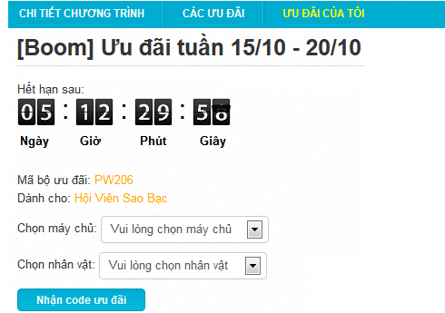 Vào mỗi thứ 2 hàng tuần sẽ là ngày phát quà V.I.P Care cho các thành viên V.I.P của Boom Online. Hãy kiểm tra và nhận quà ngay nhé.